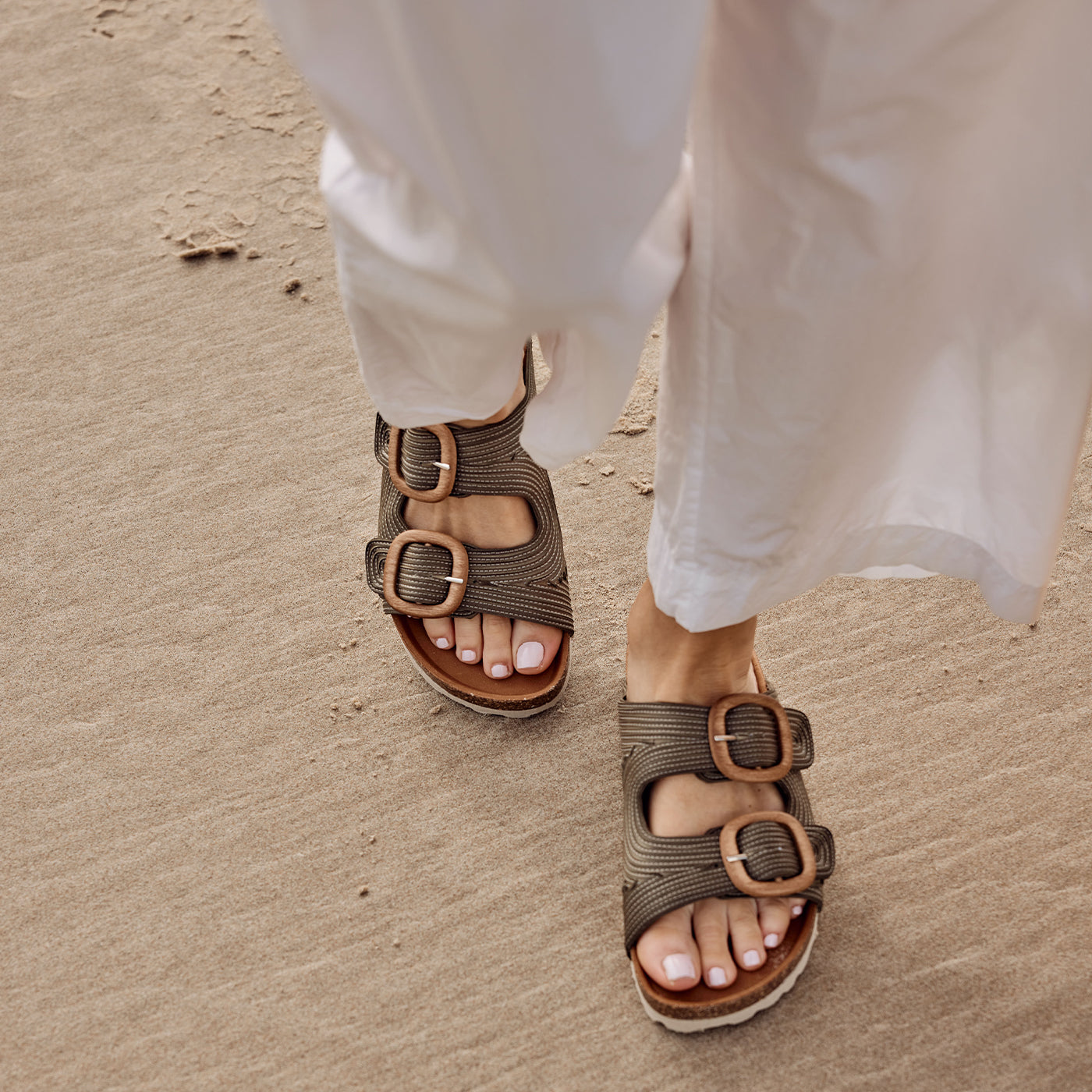 Sandy toes and sun-kissed soles. In this sun-drenched paradise, discover a fusion of fashion and functionality with our ankle strap sandals