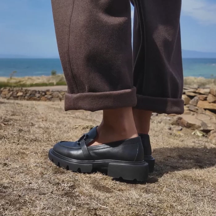 Indulge in the luxurious elegance of ADINE, a chunky loafer made of supple leather. The classic design is accentuated by an antique metal buckle, adding a touch of sophistication to any outfit. Elevate your style game with the exclusive ADINE loafer.